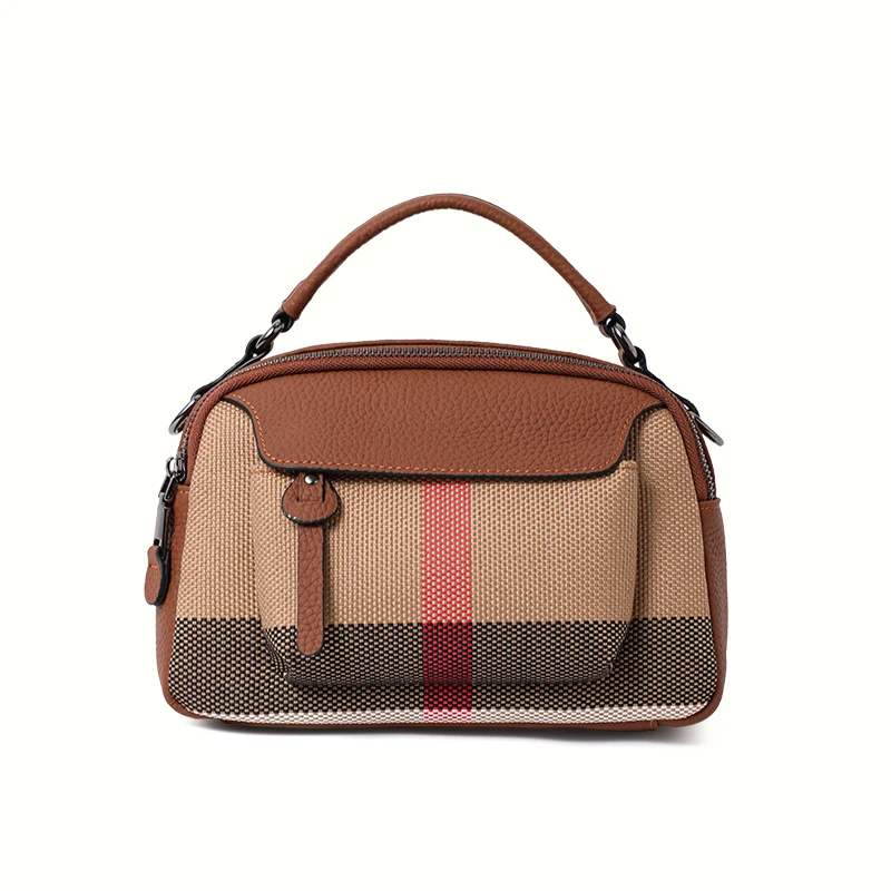 Sac à main chic à motif écossais – Toile premium – Mélange de cuir, haut élégant – poignée et bandoulière