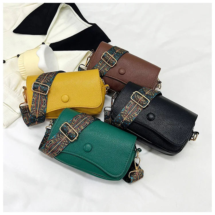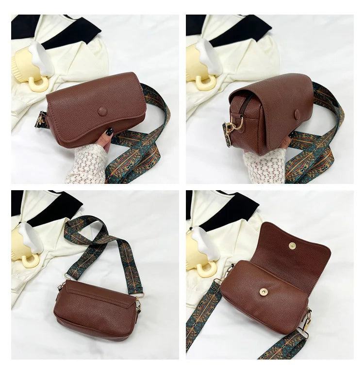 Sacs à bandoulière confortables en cuir PU à large sangle, sac à bandoulière décontracté pour femmes pour cadeaux, petits sacs à main et sacs à main de styliste ;