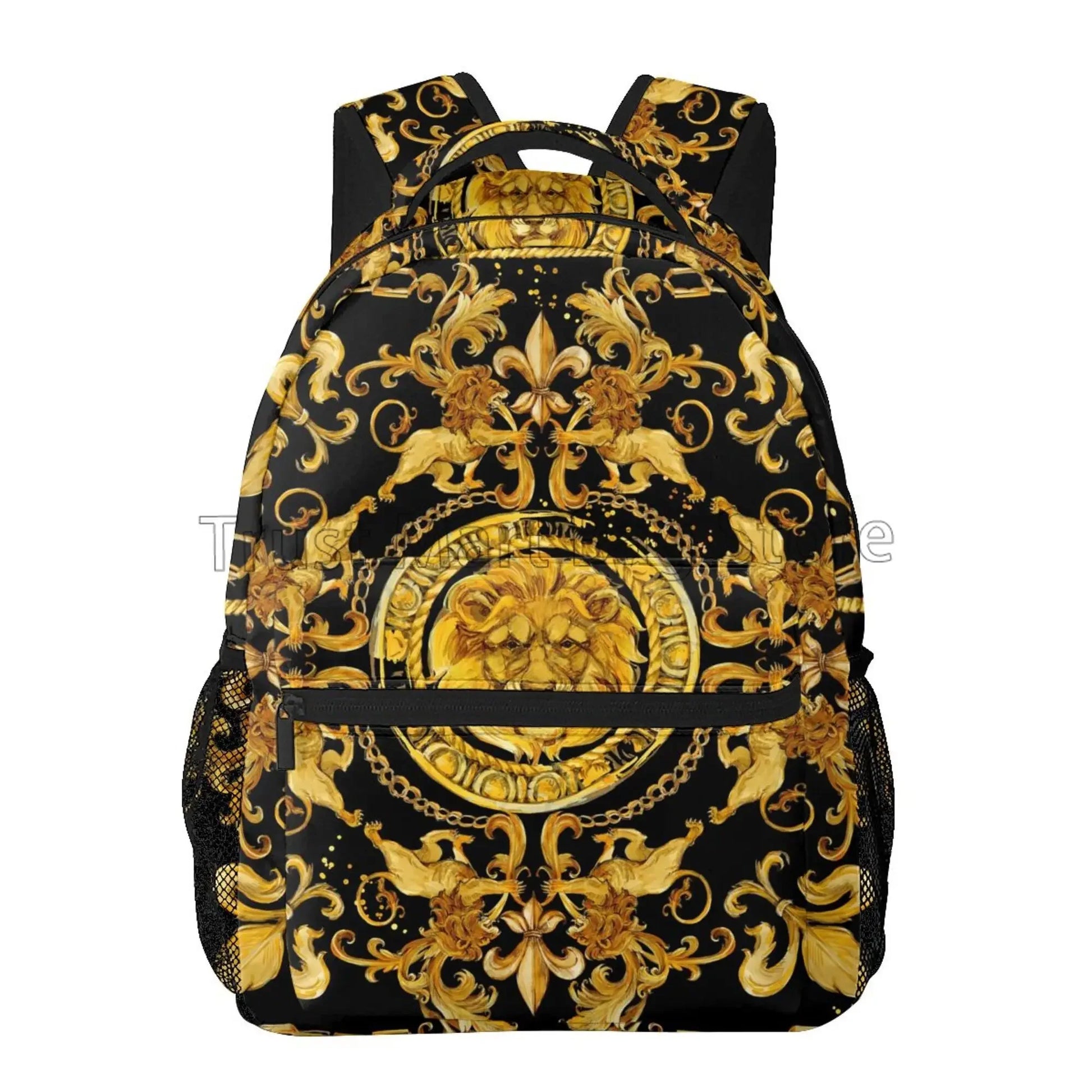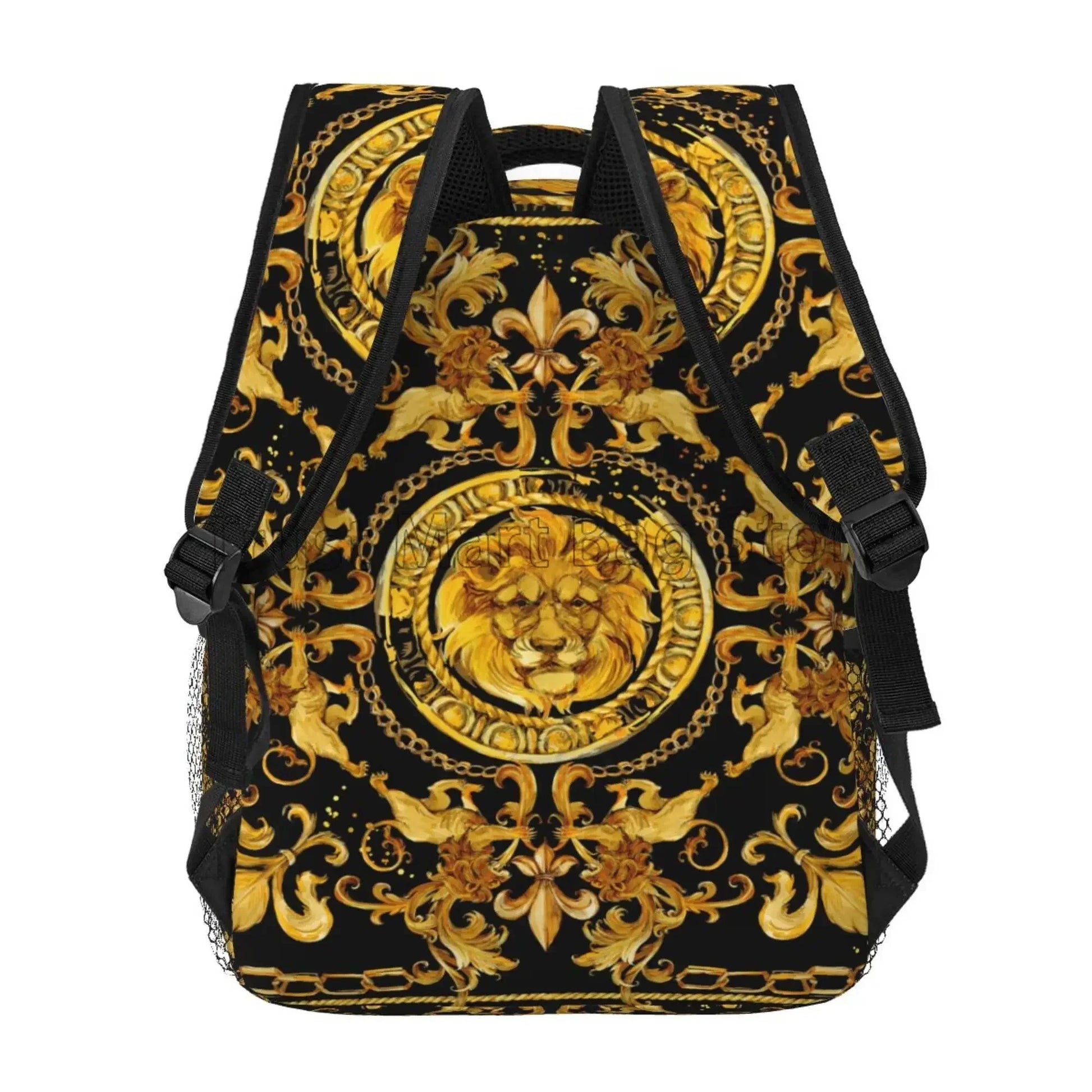 Sacs à dos de discussion dorés à motif baroque, sac d'école léger, sac à livres étudiant, sac à dos unisexe pour ordinateur portable, voyage, randonnée, camping