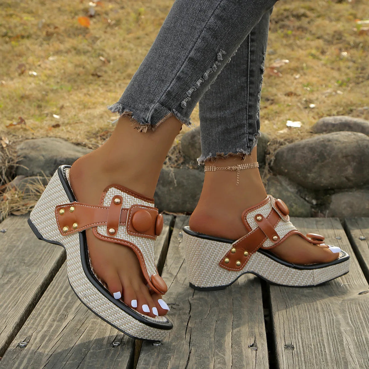 Sandales à fond épais et talon incliné pour femmes, tongs stéréoscopiques à bout carré et bout ouvert, chaussures à bout ouvert,