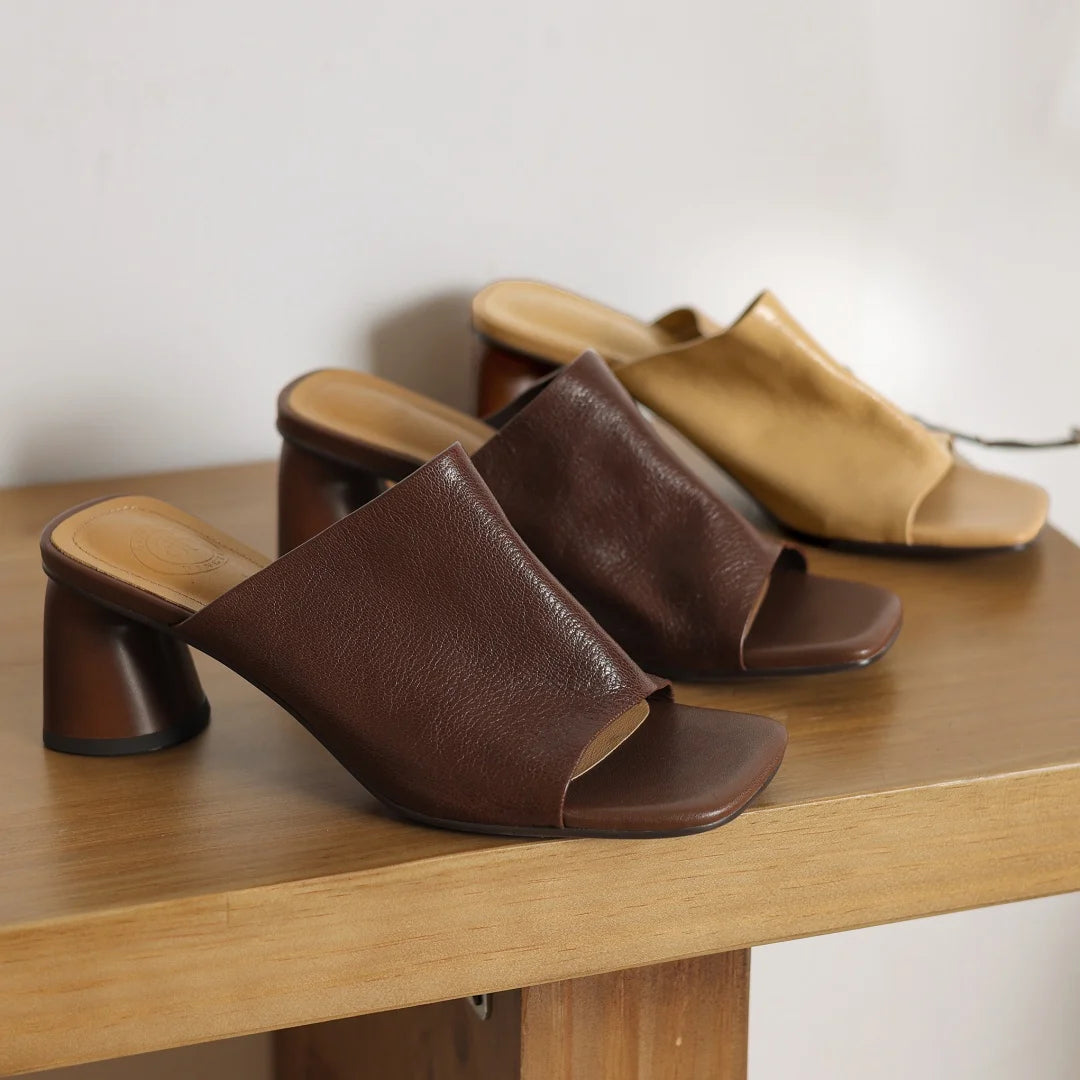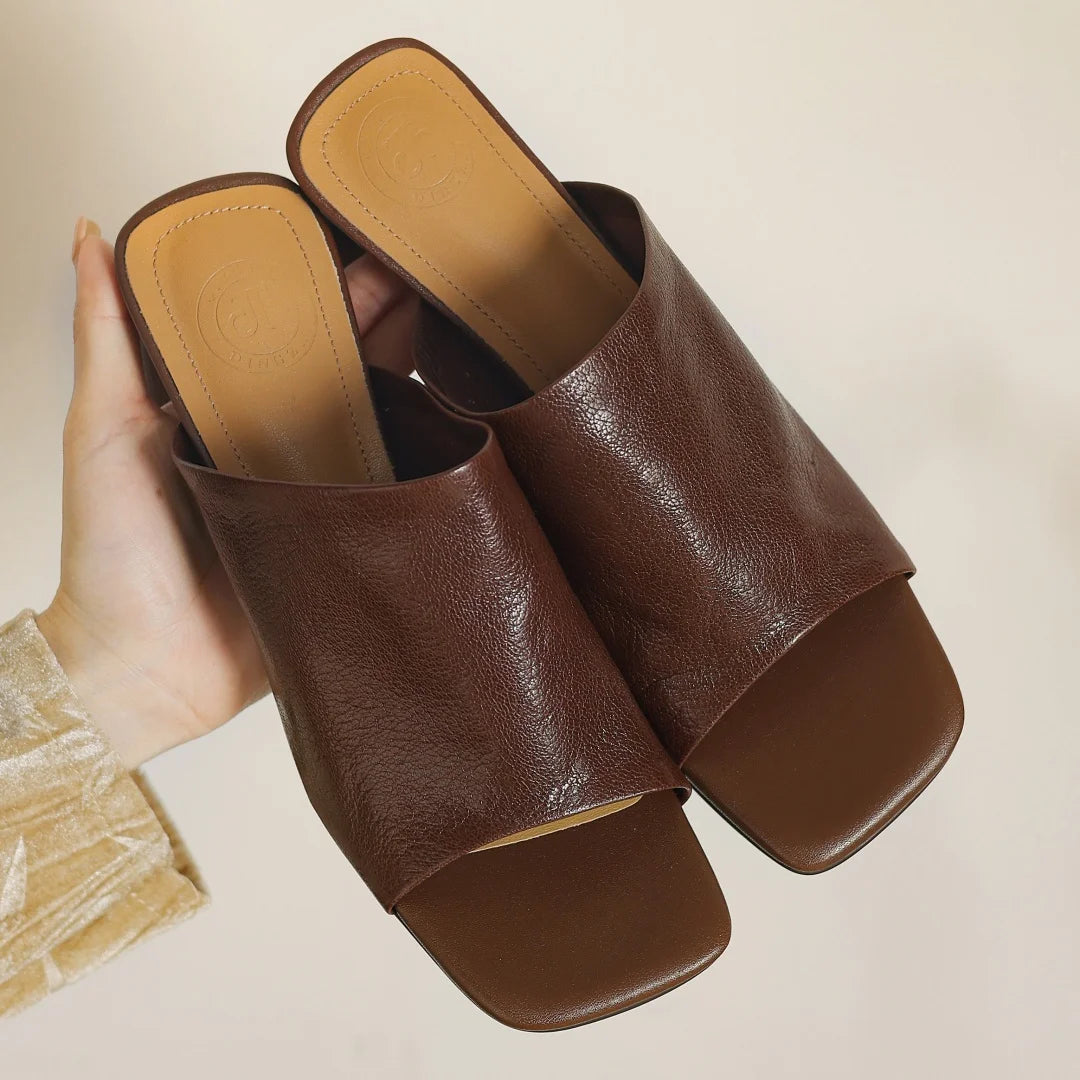 Sandales d'été en peau de mouton souple pour femmes, diapositives ald-on, talon rond de 6cm, élégantes, dames, grande taille 34-41, escarpins habnommée quotidiens minces, chaussures