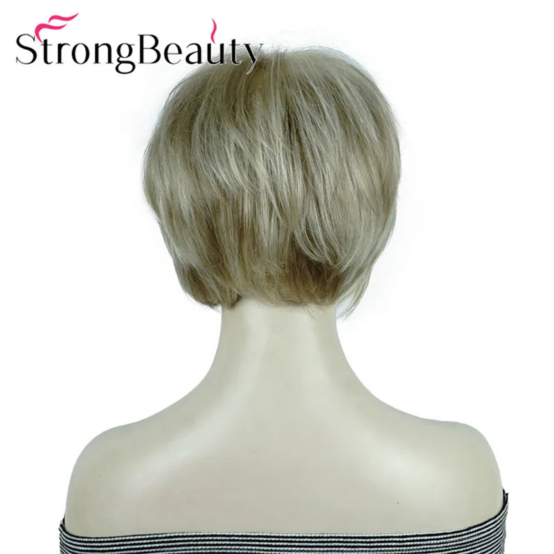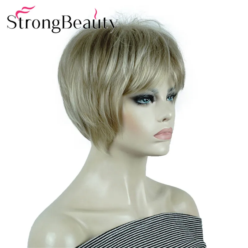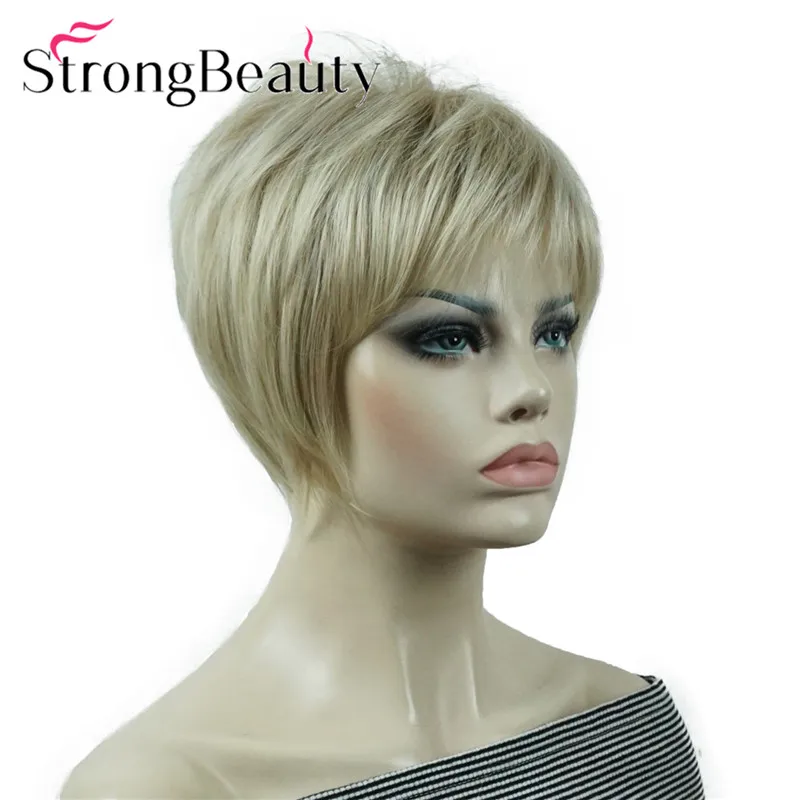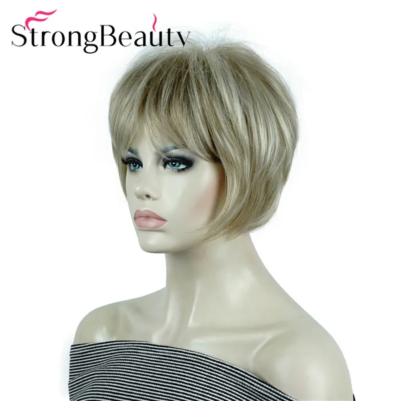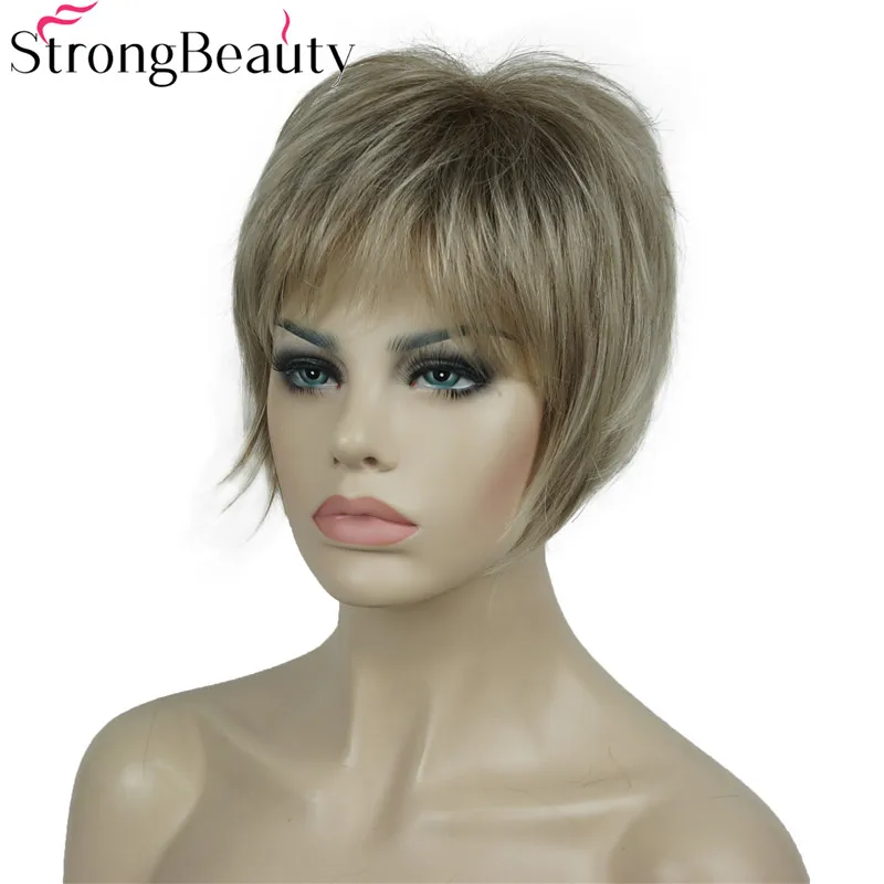 StrongBeauty-Perruques Synthétiques Courtes Droites, Cheveux Doux, Layered Shag, Ombre Blonde