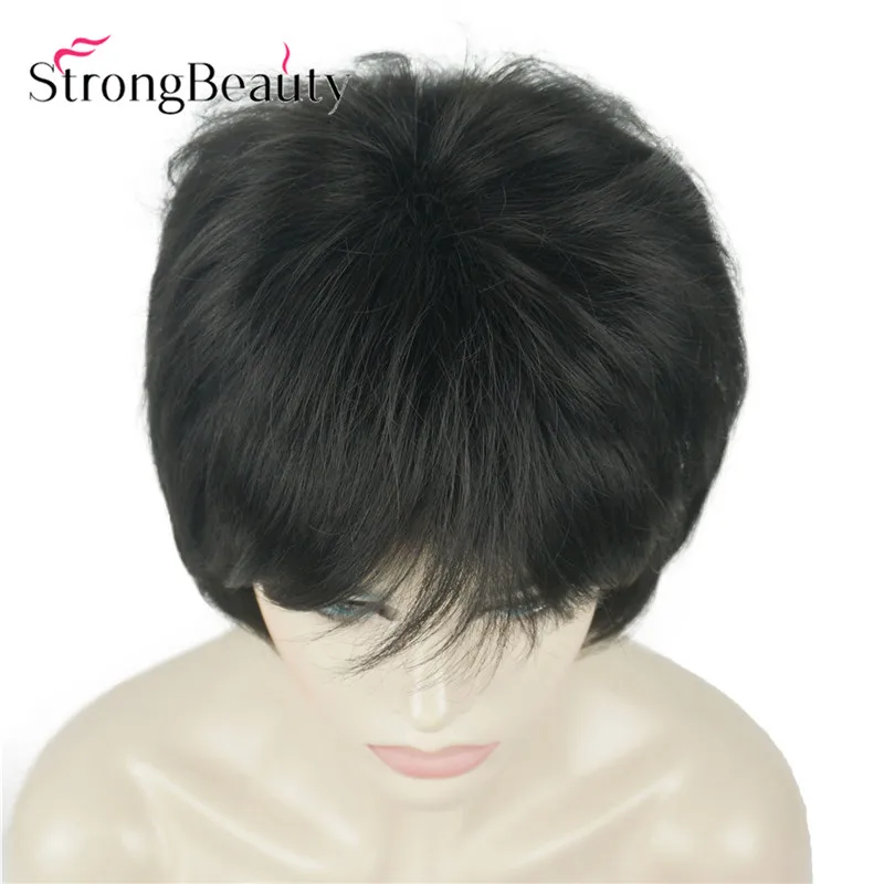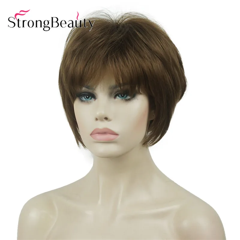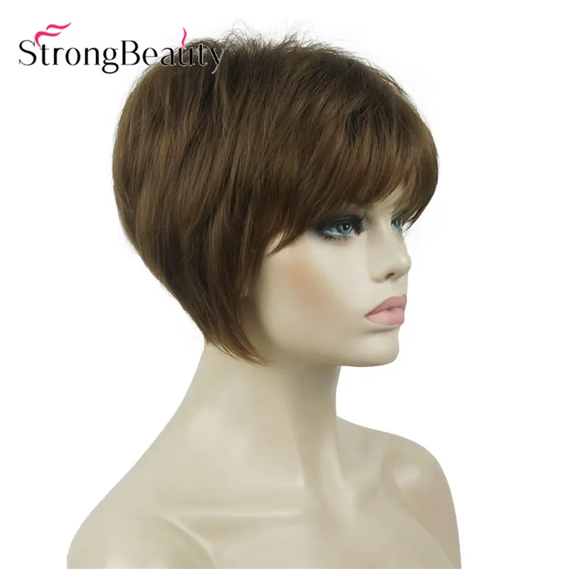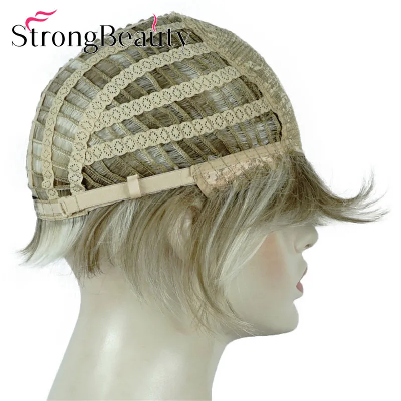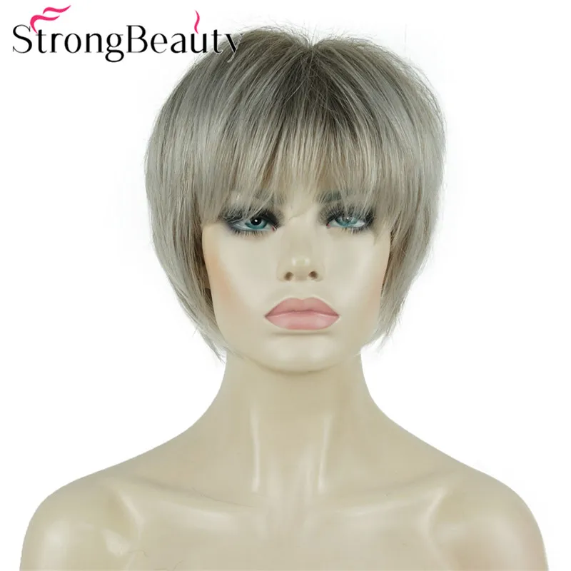 StrongBeauty-Perruques Synthétiques Courtes Droites, Cheveux Doux, Layered Shag, Ombre Blonde