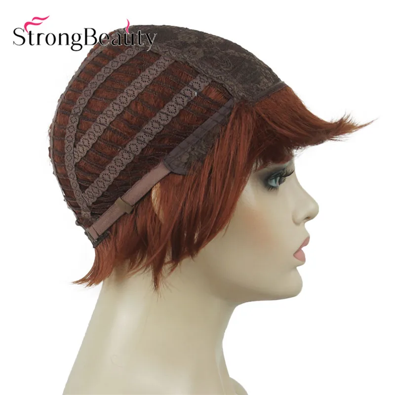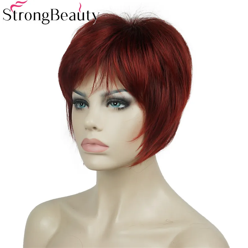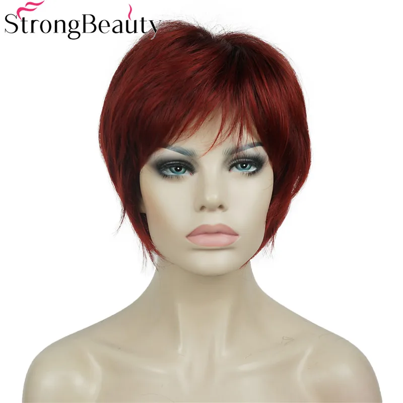 StrongBeauty Perruques Courtes Droites Cheveux Doux Couches Shag Ombre Blonde/Rouge Perruque Synthétique
