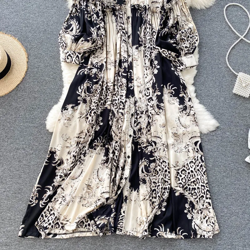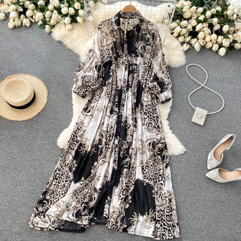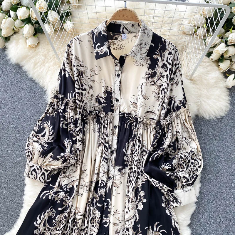 Summer 2023 Fashion Long skirt fancy bow tie lantern long sleeve waist slimming for peplum dress