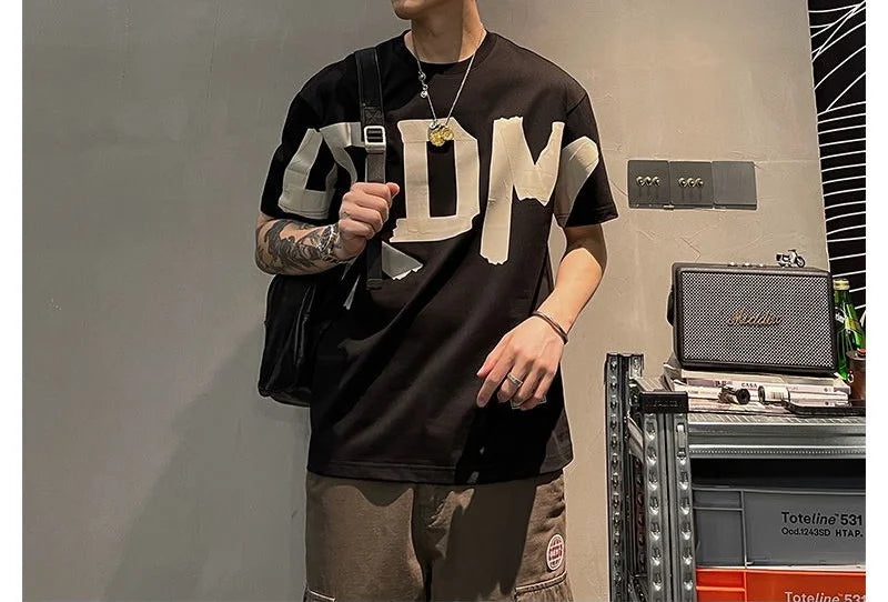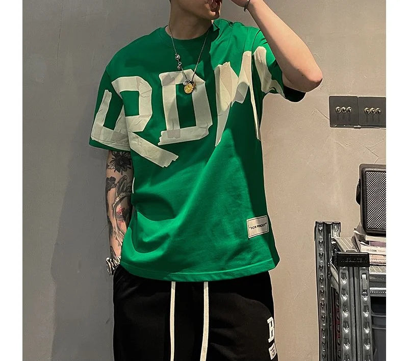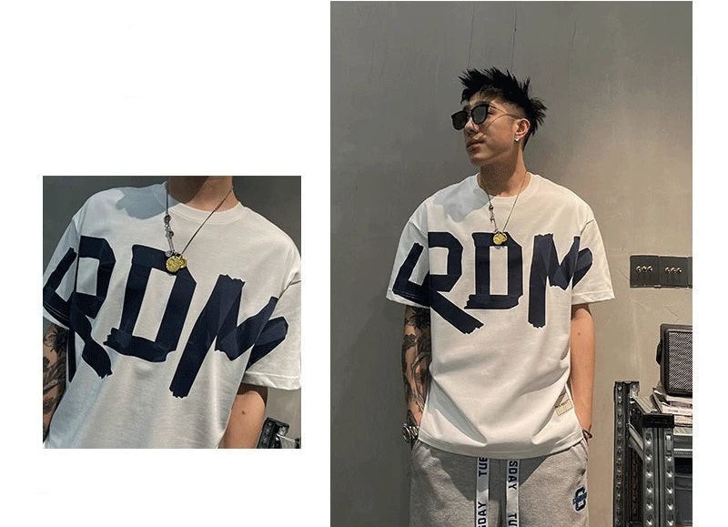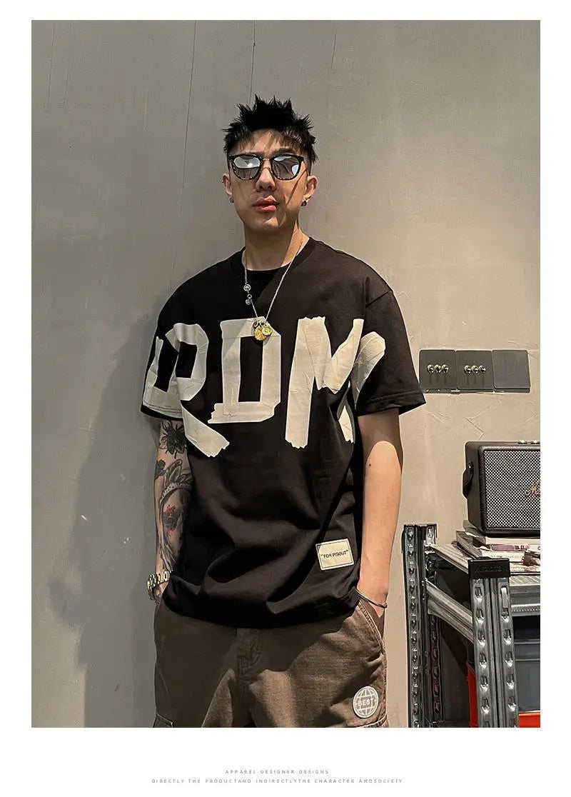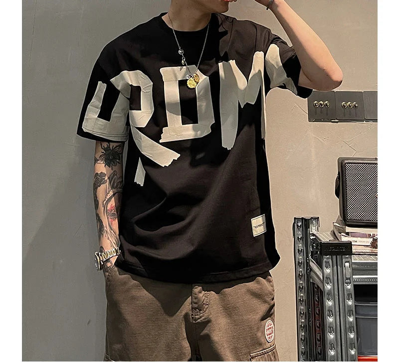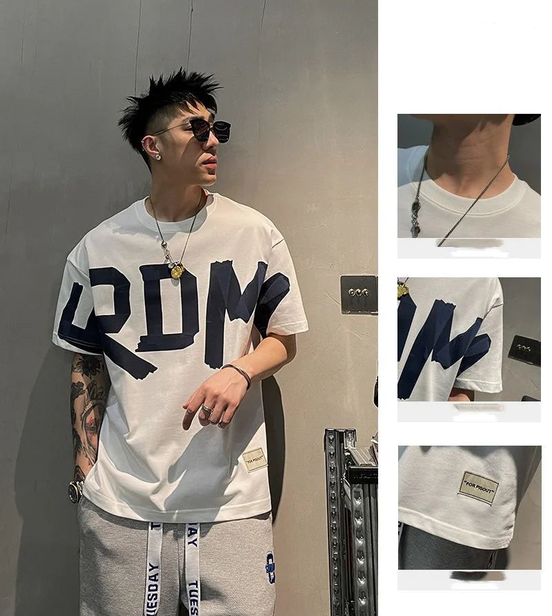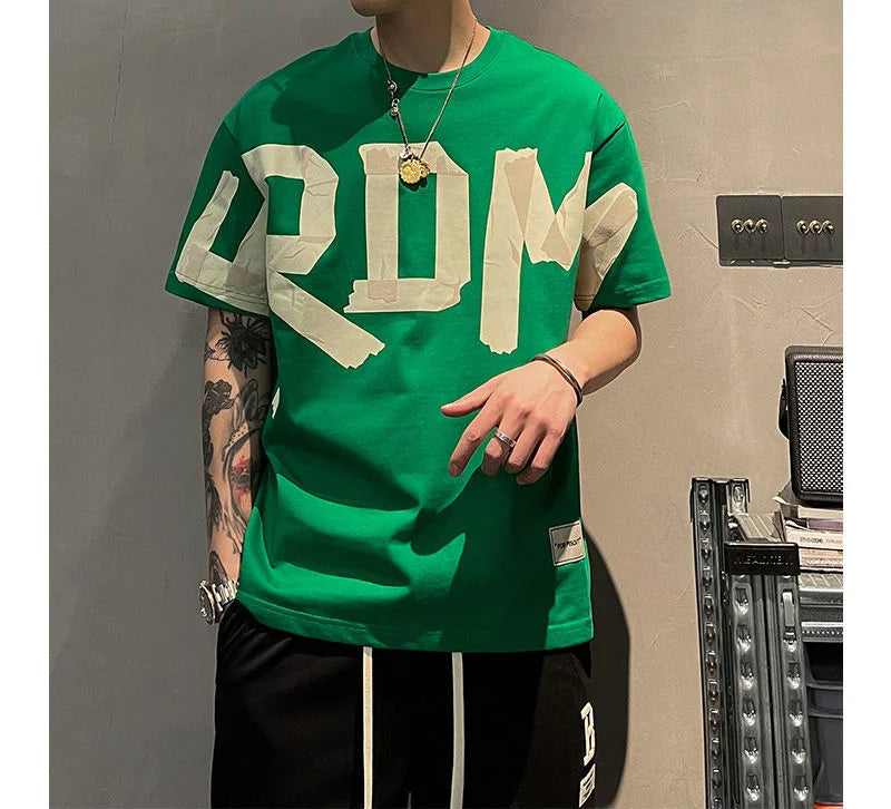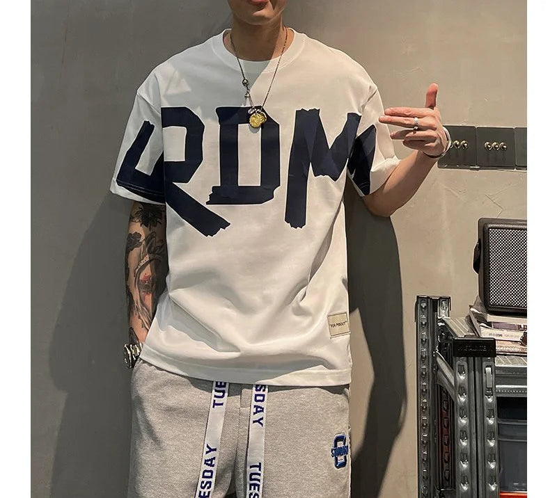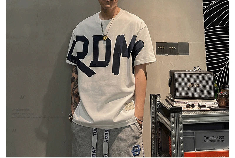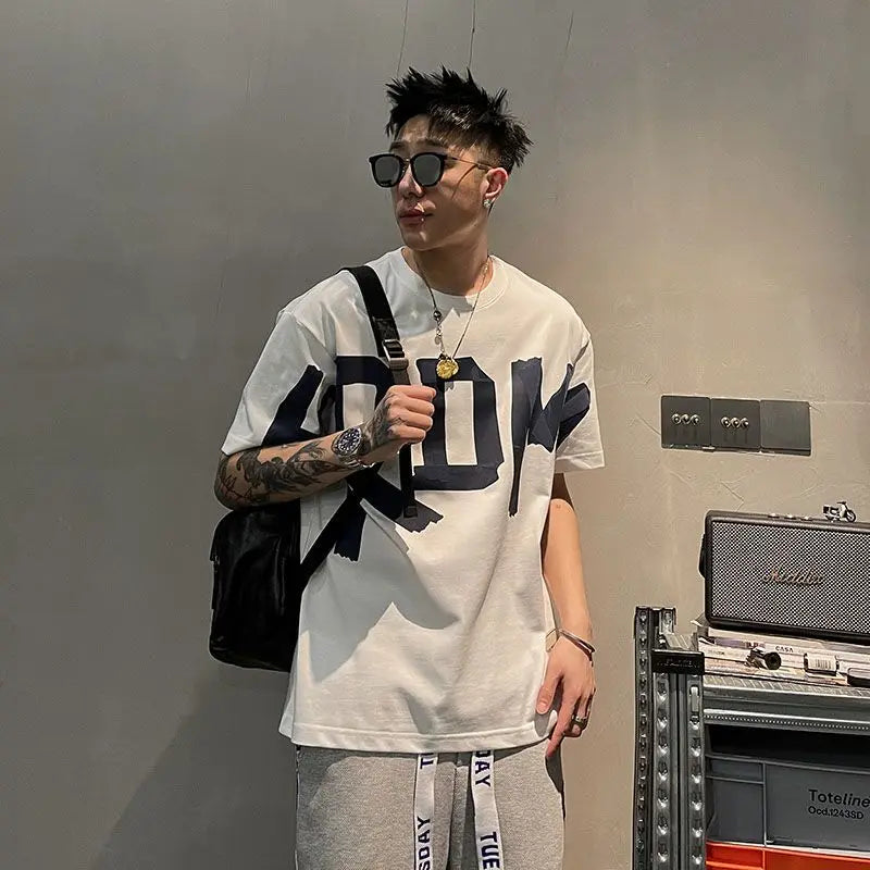T-shirt manches courtes col rond, décontracté, assorti avec tout, tendance coréenne, couleur unie, lettre imprimée, ample, mode jeunesse, été 2023
