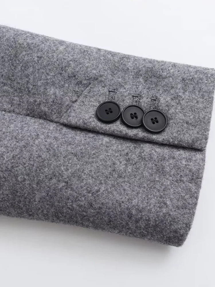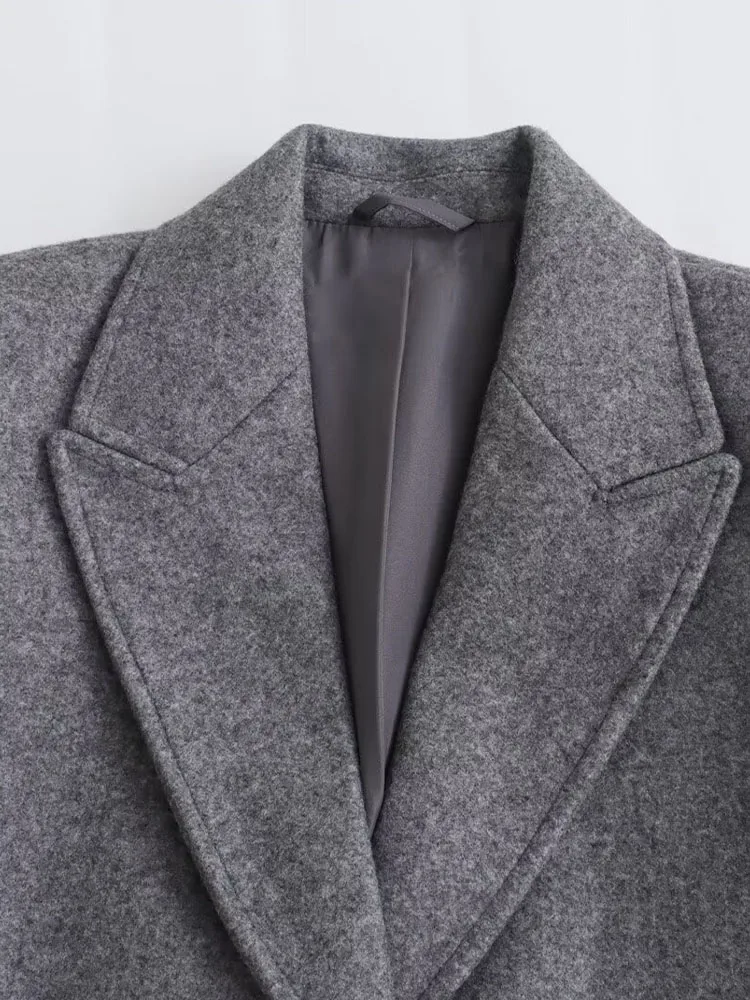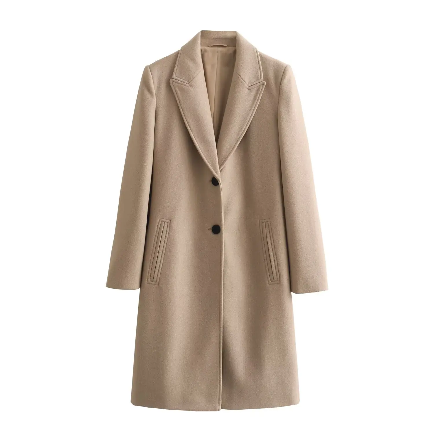 TRAF femmes 2024 automne nouvelle mode Tongle Style coupe ajustée longue manteau décontracté Chic revers bouton à manches longues manteau vêtements d'extérieur Mujer