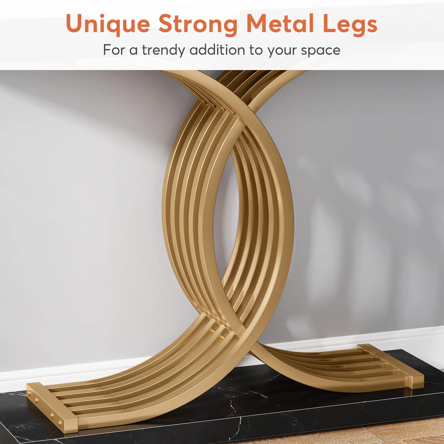 Tribesigns-Table d'entrée dorée, canapé moderne en imitation marbre, avec pieds géométriques en métal, 39 pouces
