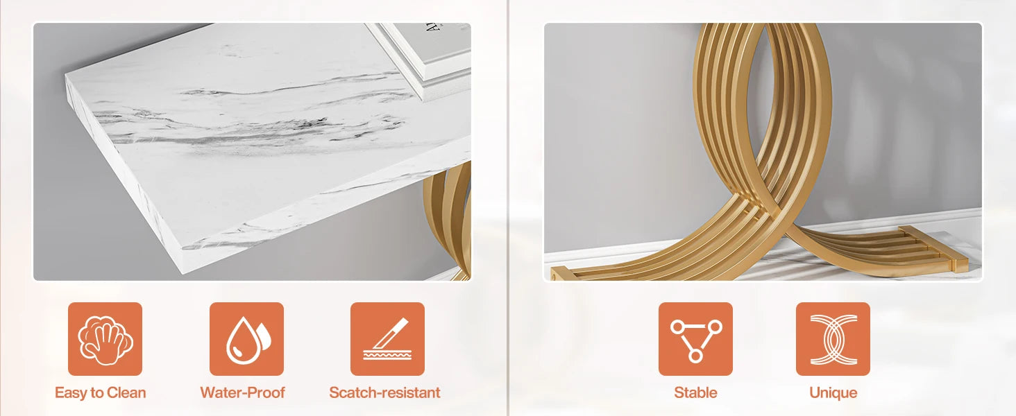 LOOK MODERNE-Des lignes épurées, des textures en faux marbre et une base géométrique en métal doré constituent un thème luxueux contemporain, ce qui rend cette table console adaptée à la plupart des intérieurs modernes, qui est parfait pour être placé dans votre couloir, porte d'entrée, salon, foyer, entrée.