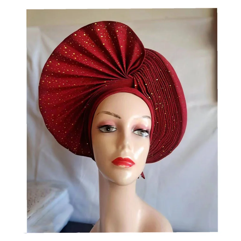 Turban de tête musulman pour femmes, Gele africain violet, casquettes déjà fabriquées, Auto Aso Oke, cravate de sauna Gele, chapeau rond pour dames, Z620-2 de fête