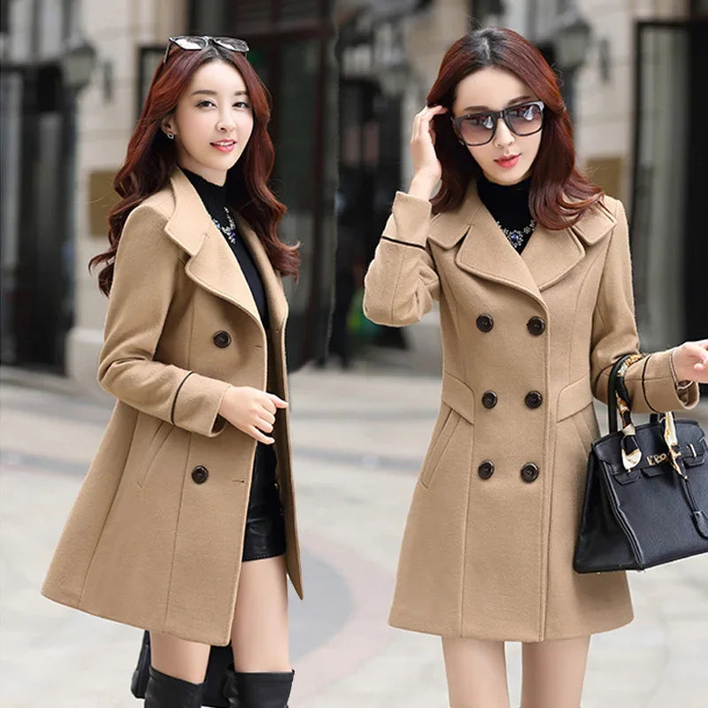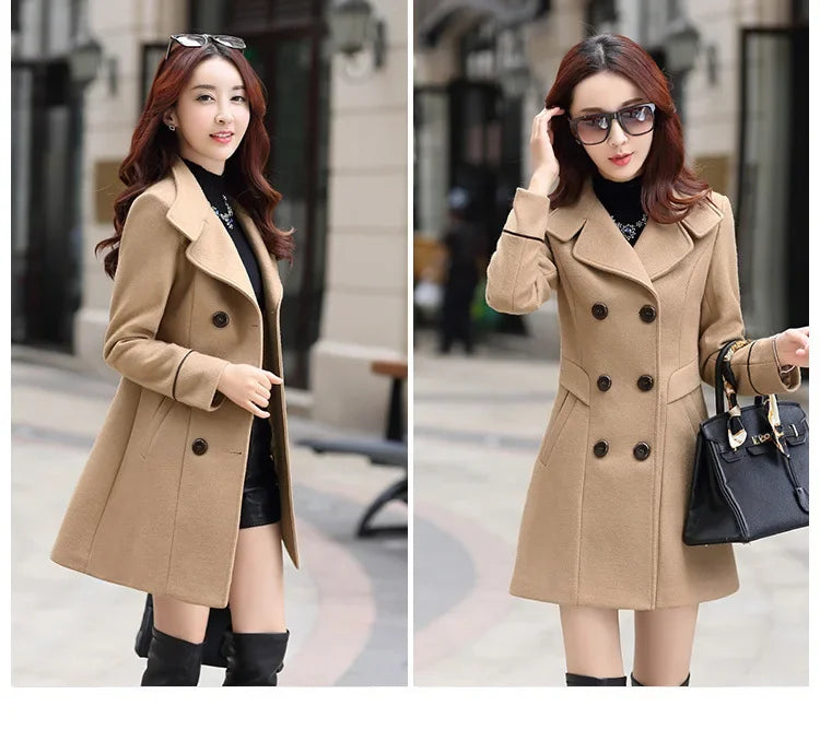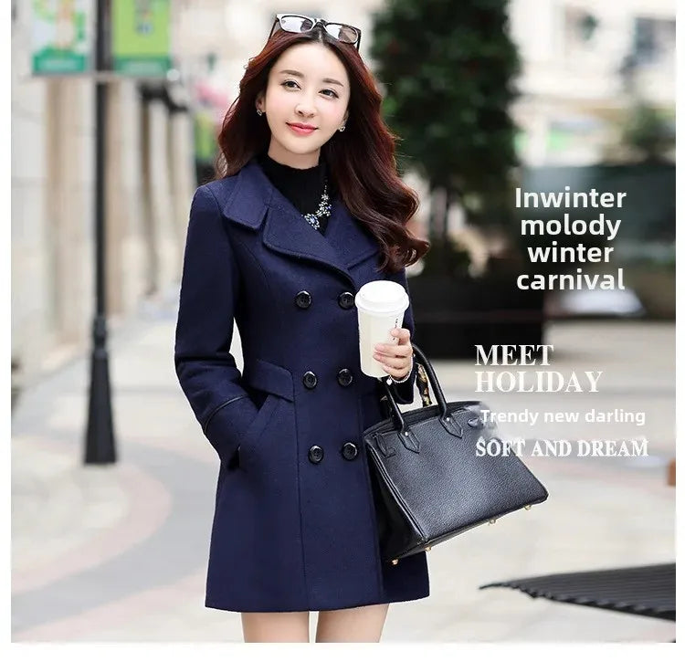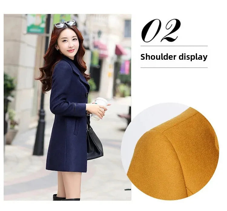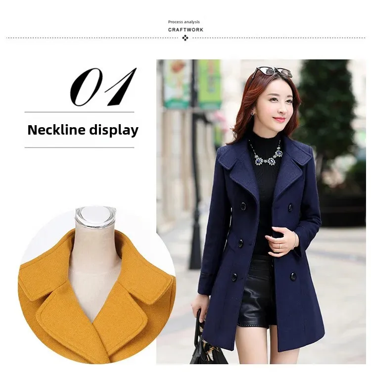 Veste en laine de style coréen pour femme, pardessus en nylon mi-long, double bouton de nucléo, 30 ans, 40 ans, 50 ans, automne, hiver, nouveau, 2023