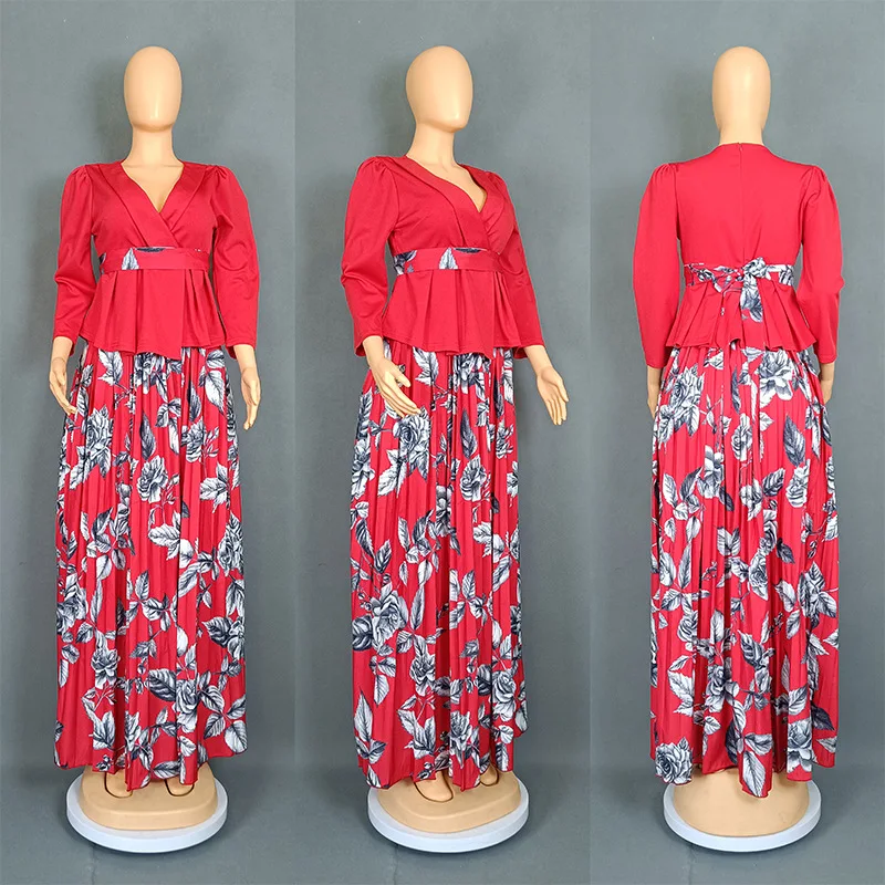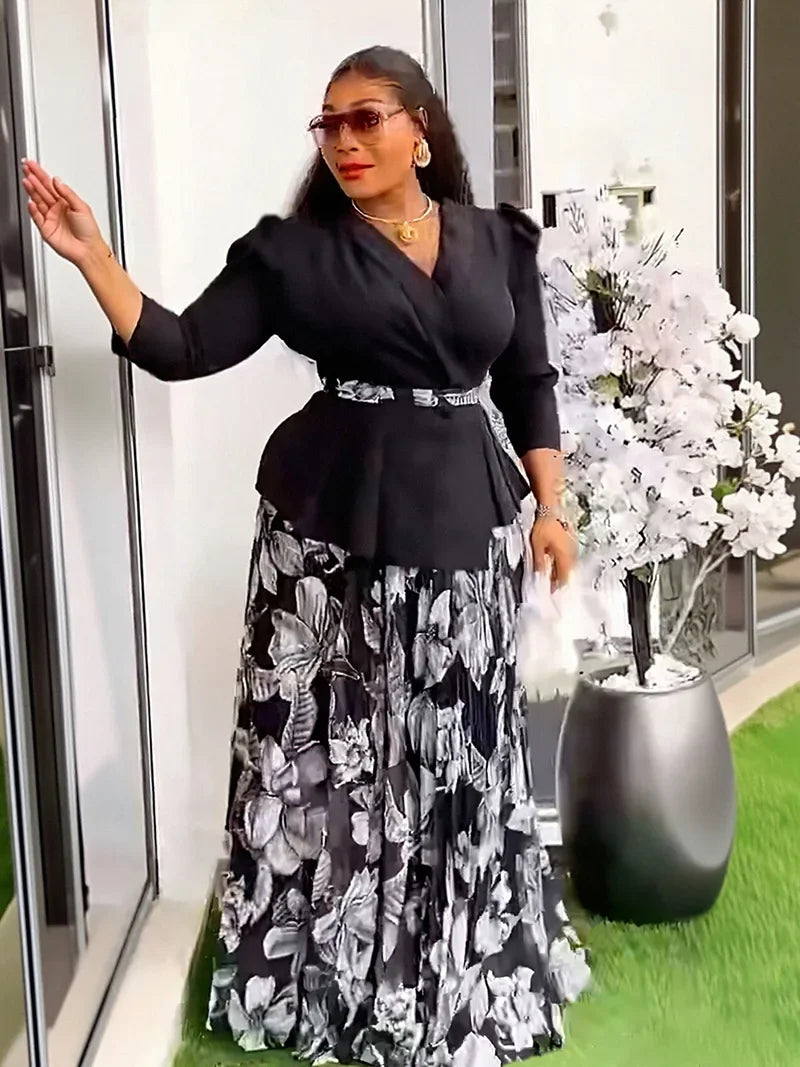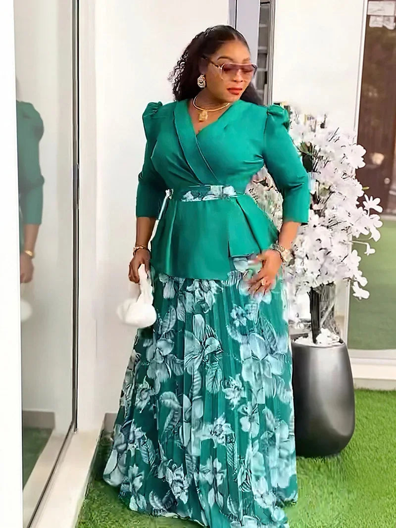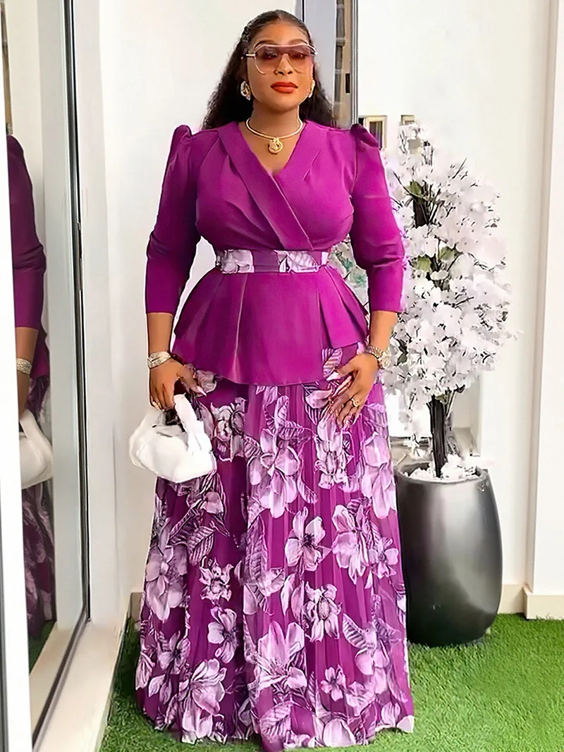 Vêtements africains 2 pièces pour femmes, mode d'été, demi-manches, col en v, haut imprimé en Polyester, jupe longue, ensembles assortis, 2025