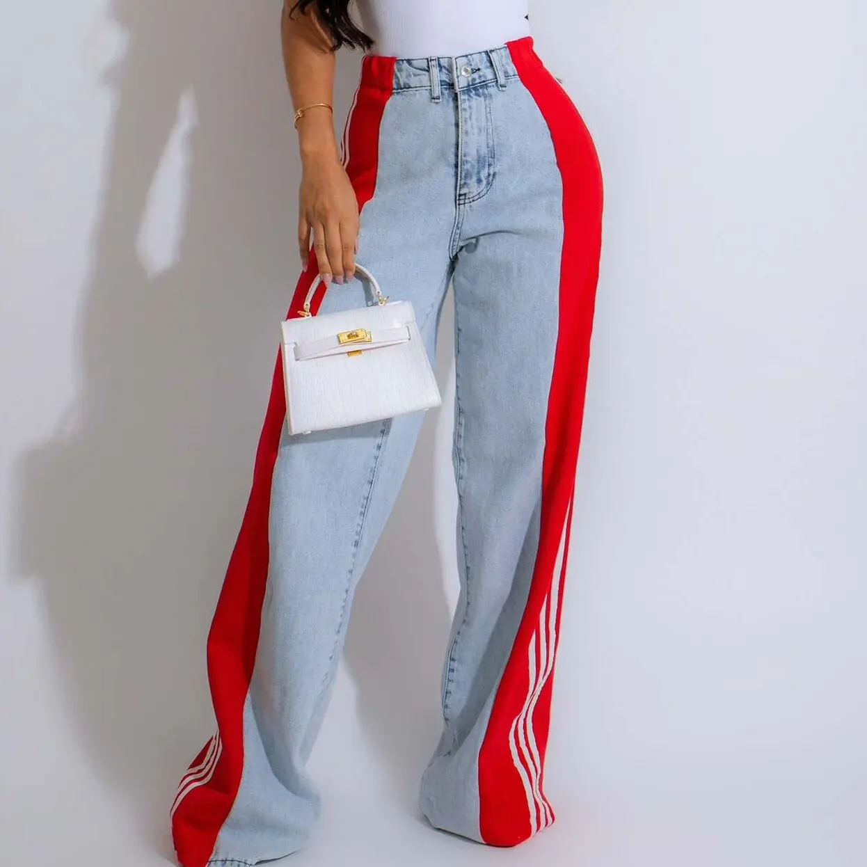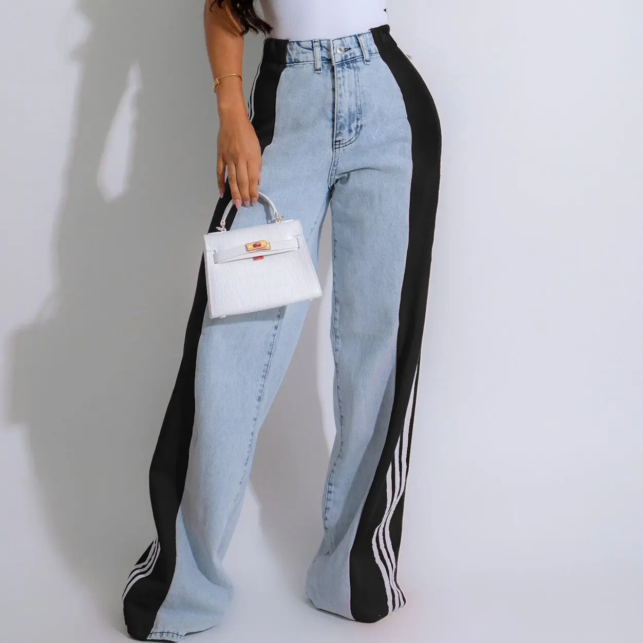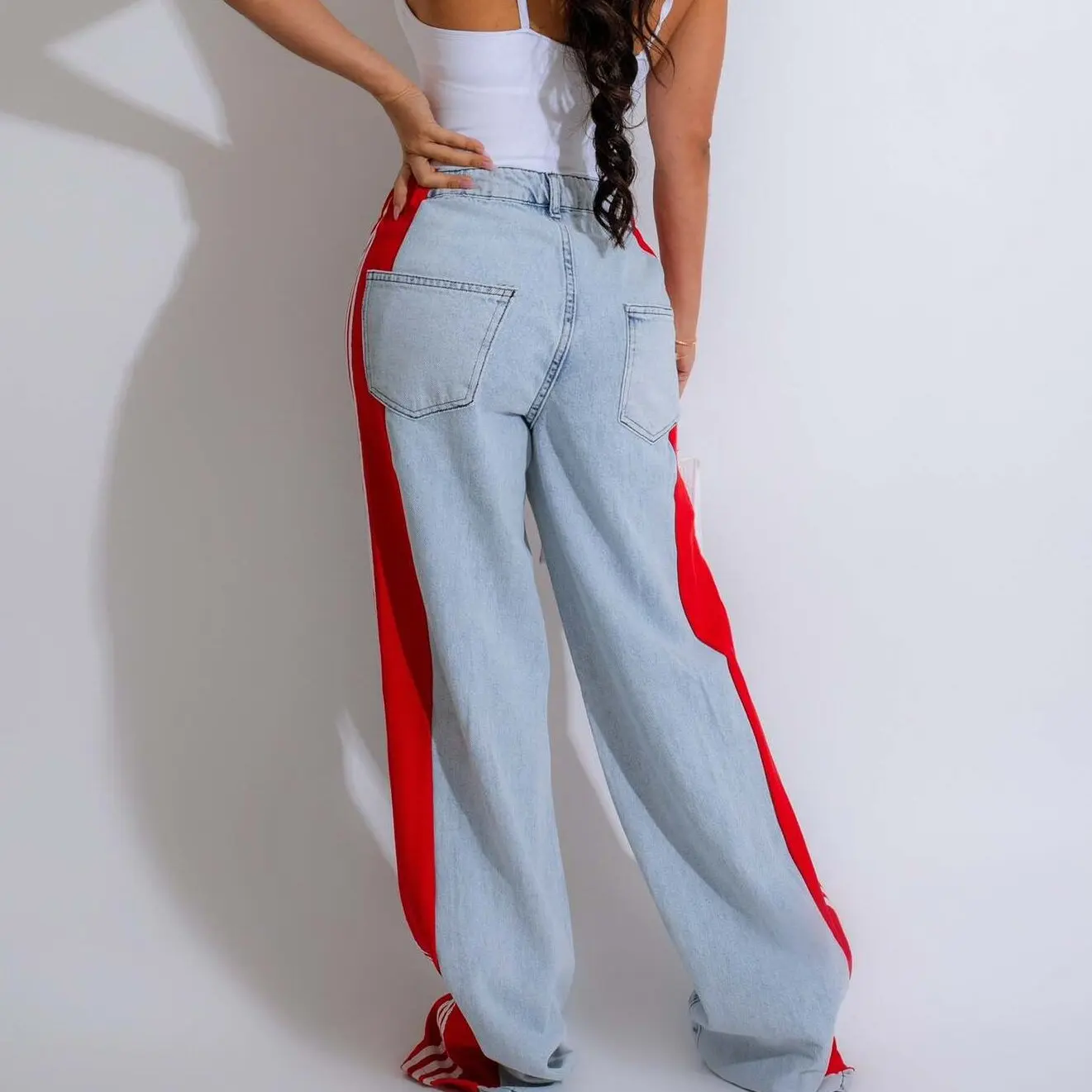 Vintage Fashion Design Comfortable Loose Straight Leg Jeans Pockets Everyday Commuter Casual Patchwork New Style Temperament