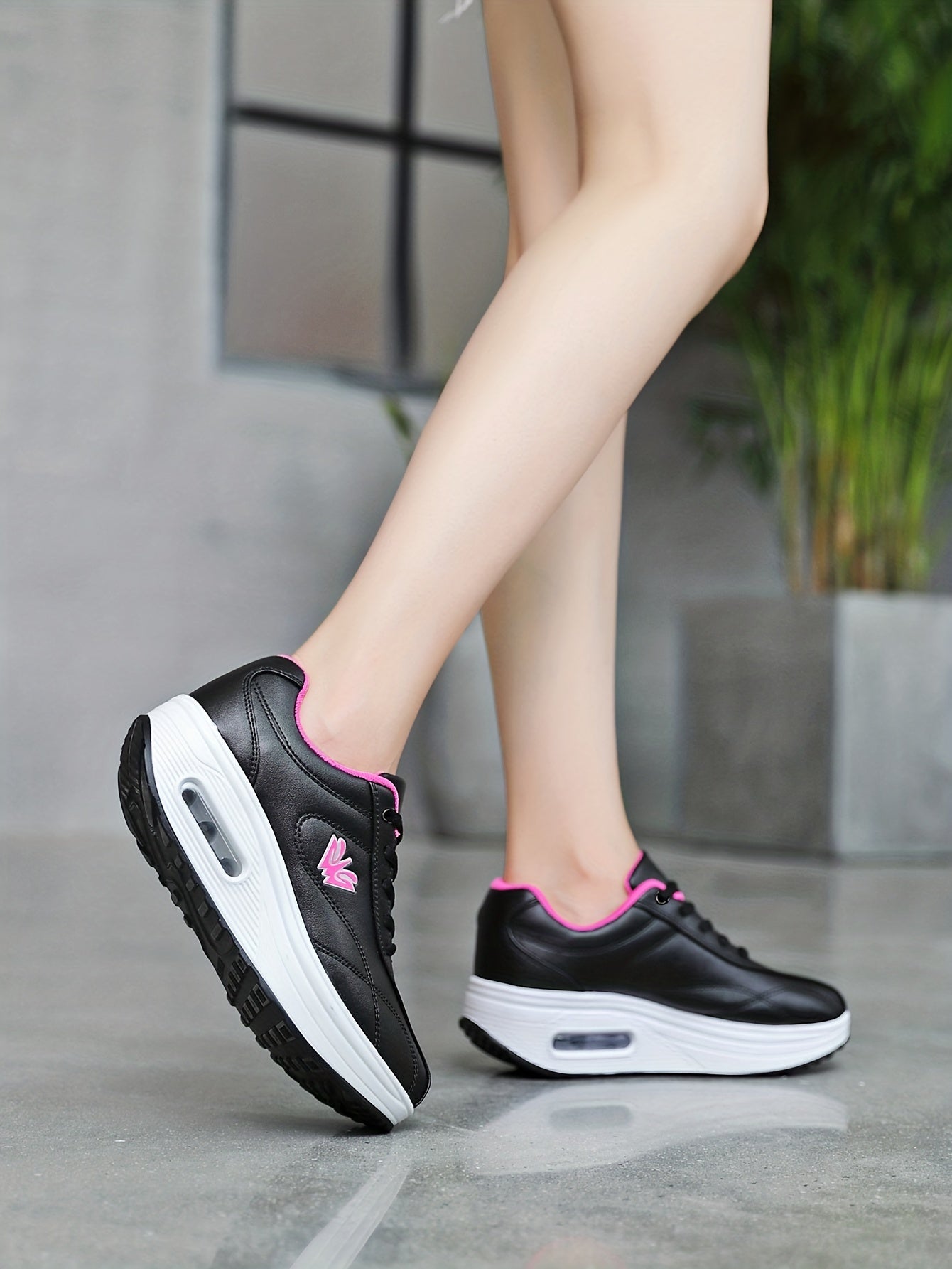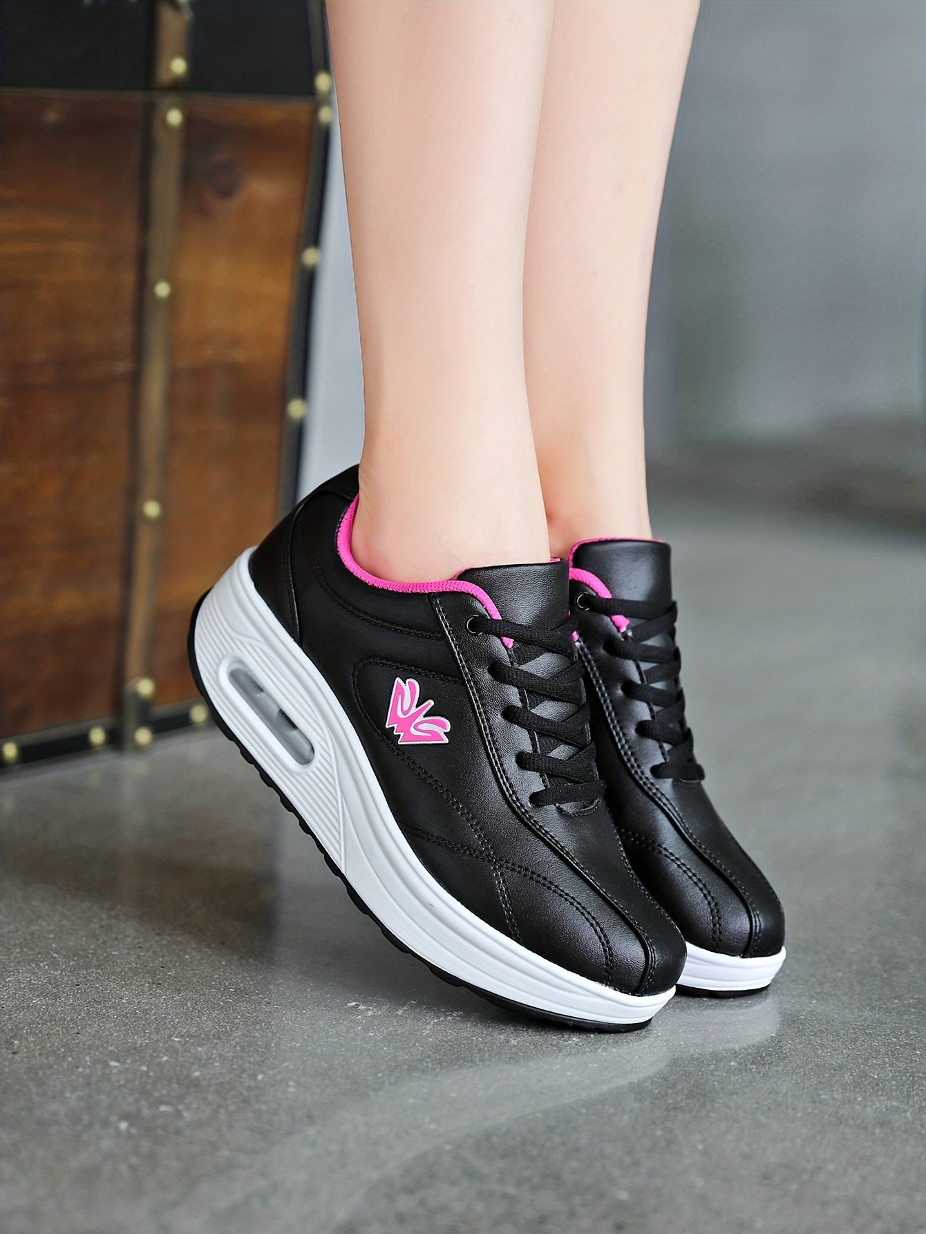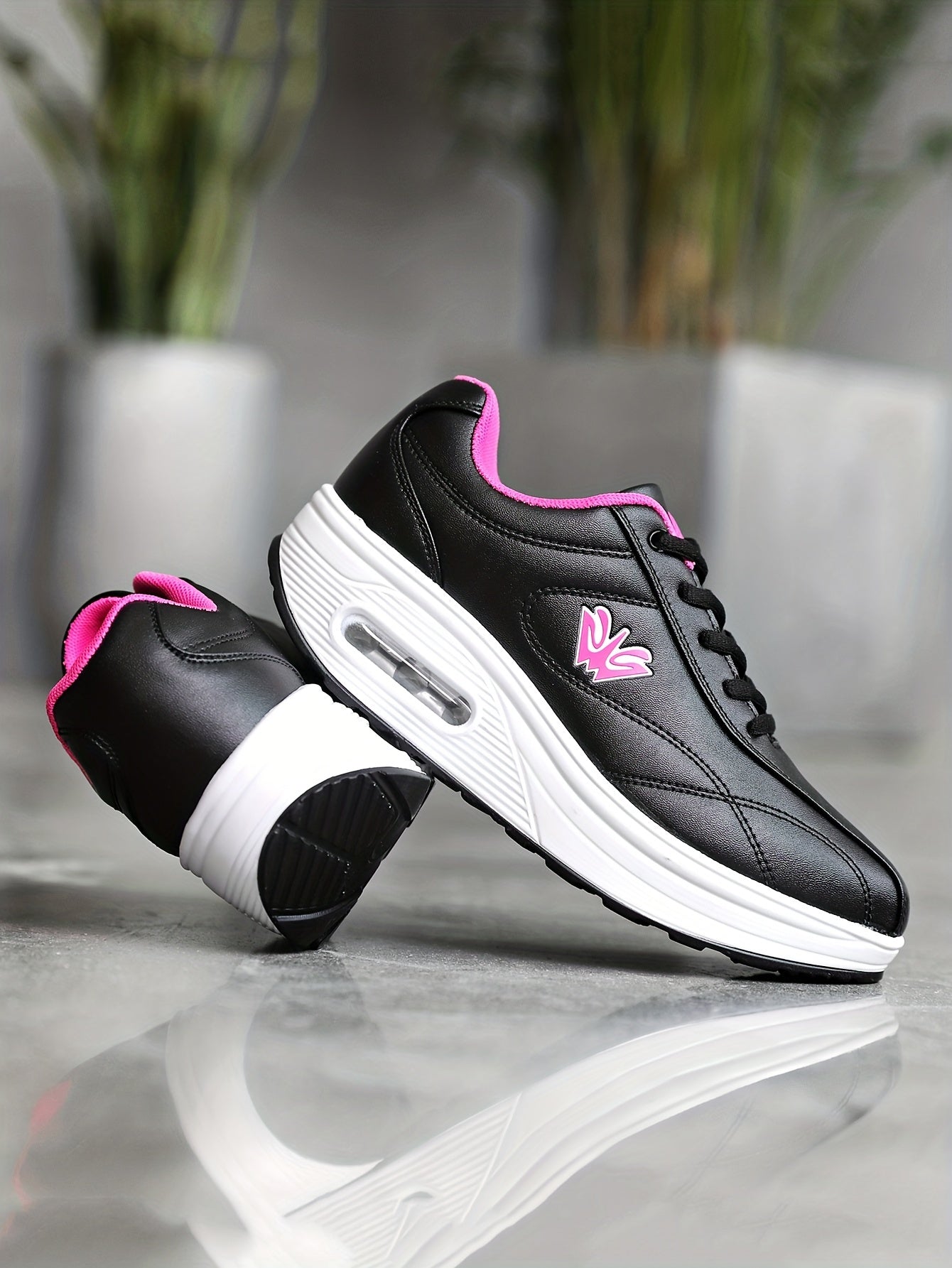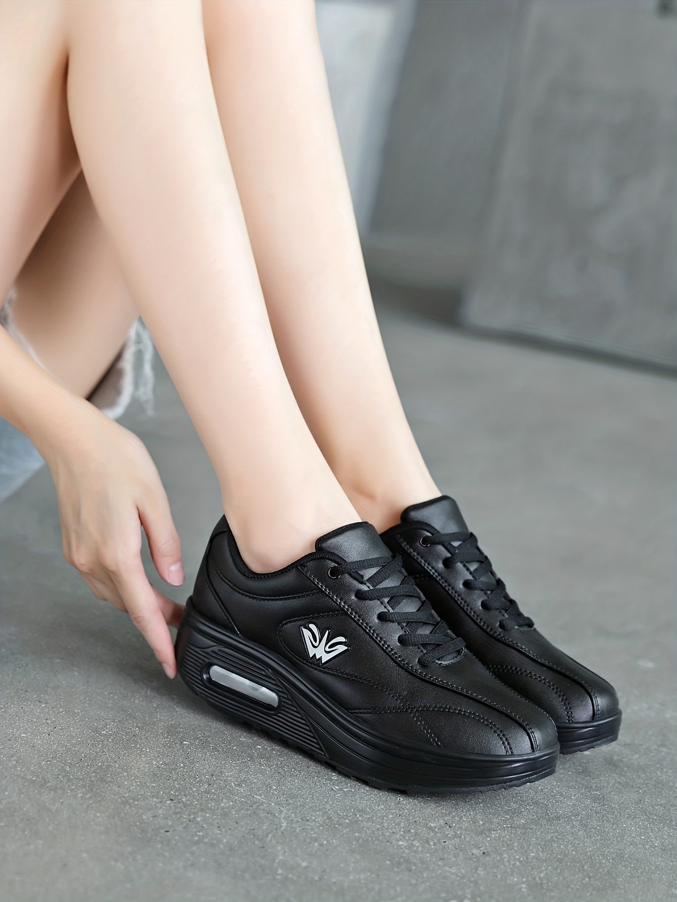 Women's Faux Leather Air Cushion Sneakers, Comfortable Thick Bottom Sport Shoes