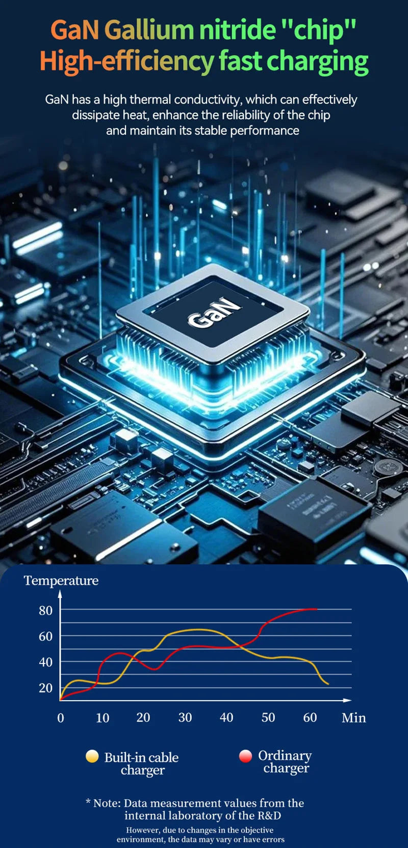 1.*GaN a une conductivité thermique élevée, qui peut dissiper efficacement la chaleur, améliorer la fiabilité des puces et maintenir des performances stables.