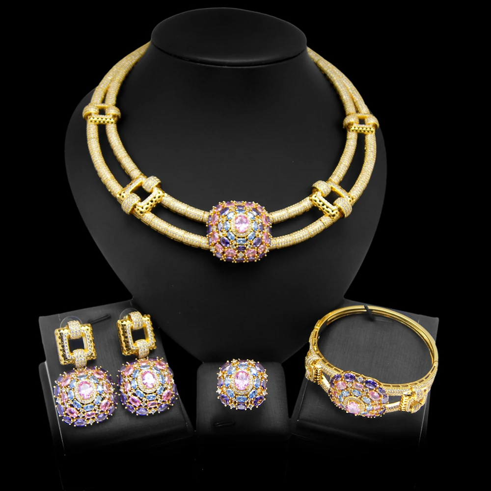Top Quality Luxury American Diamond Jewelry Set New Women Necklace Earrings Bracelet Ring Party Jewelry Set