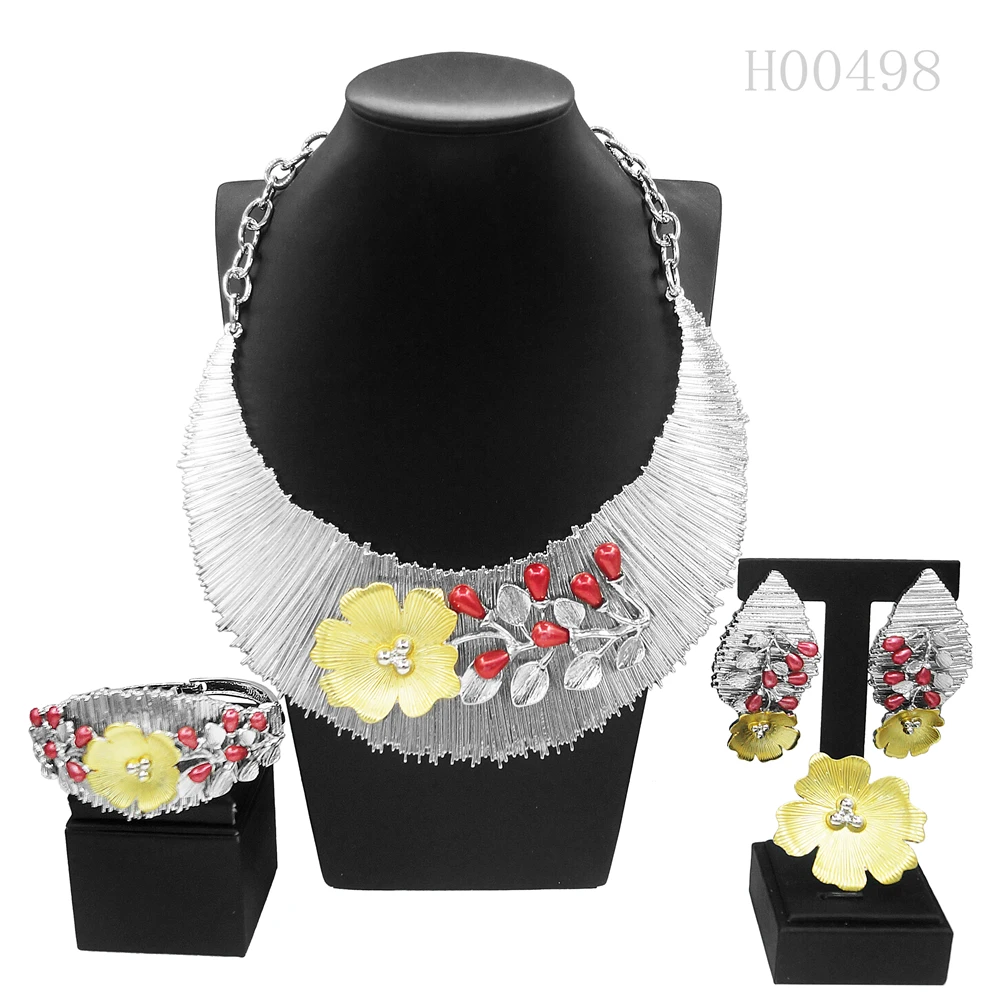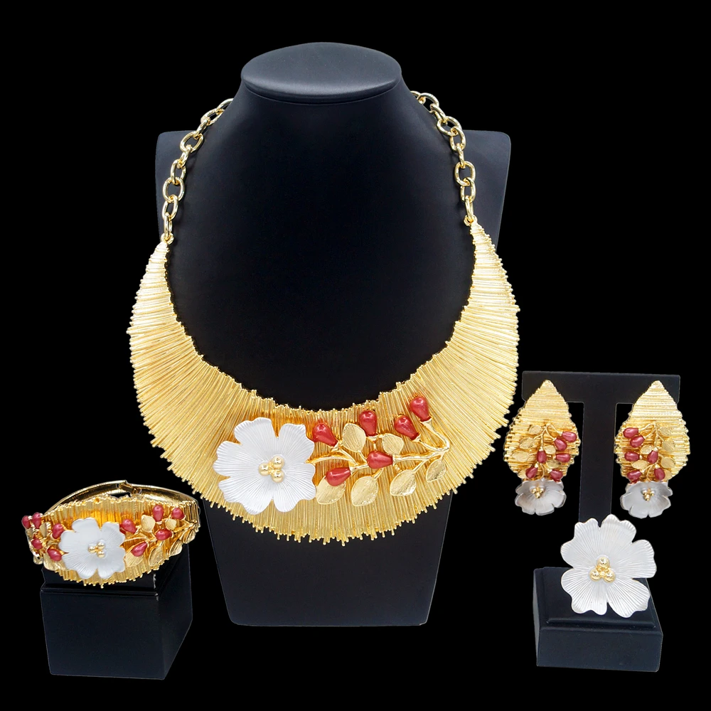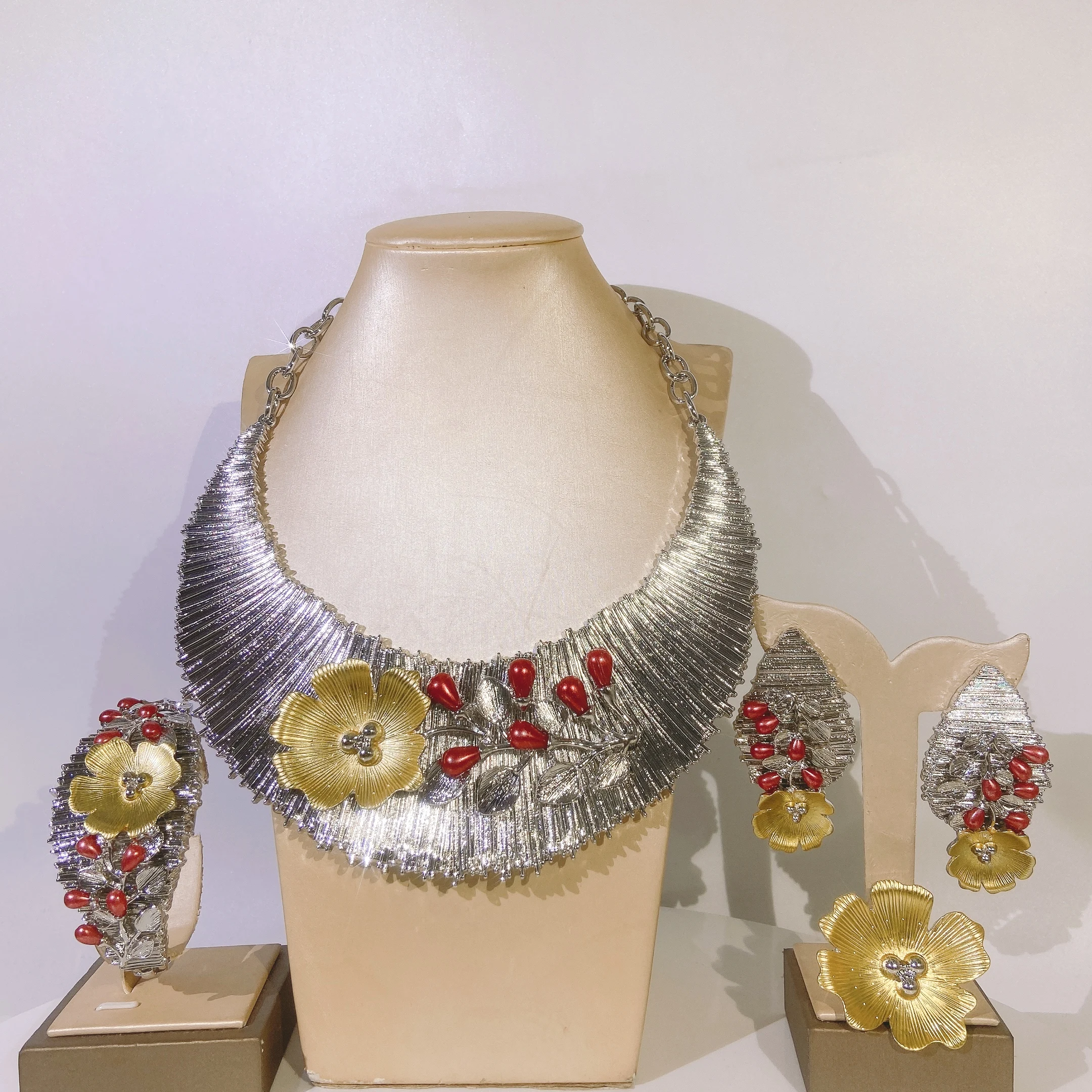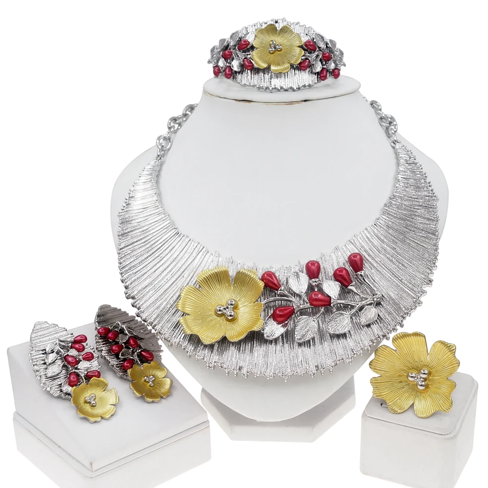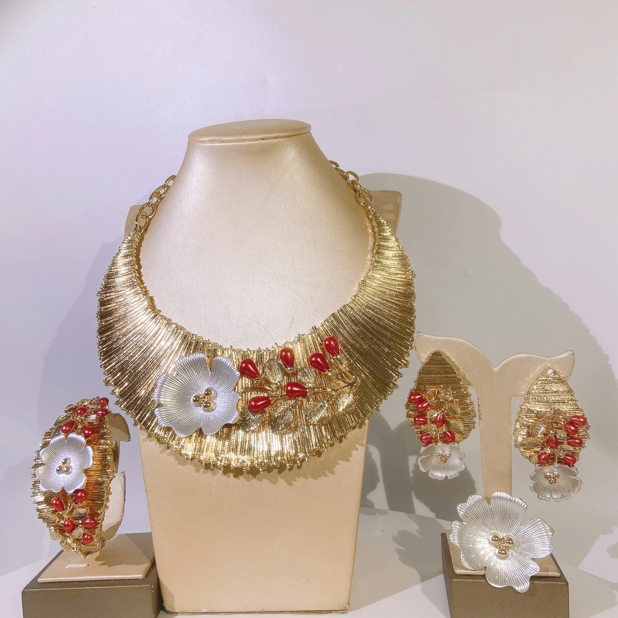 Two Tone Italian Gold Jewelry Sets Necklace Bracelet Earrings Ring Bridal Western Heavy Wedding Fine Jewelry Set